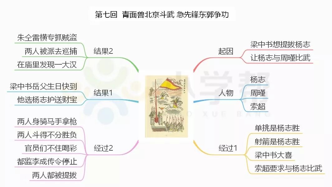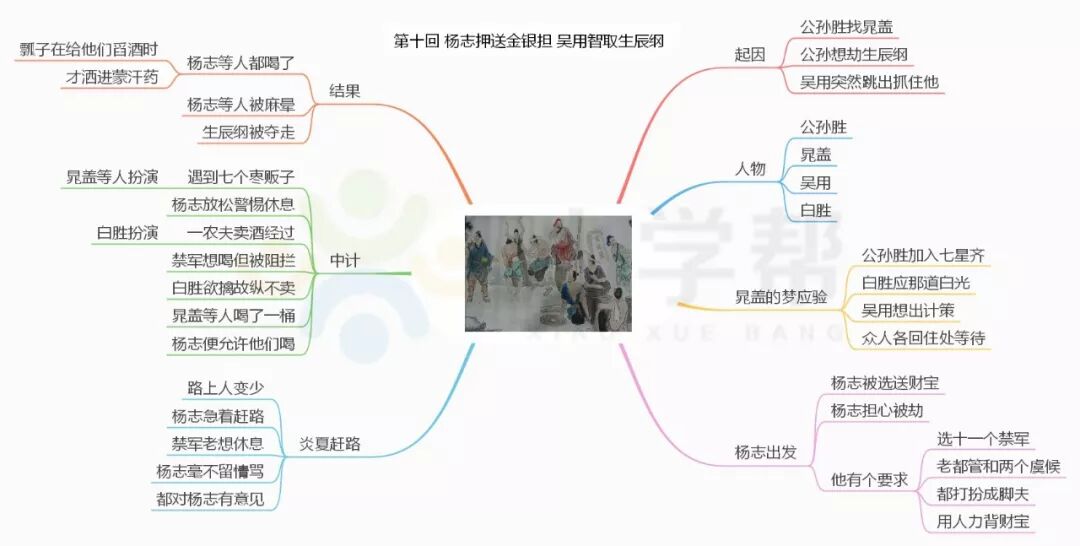 梁山附近有个当保正的晁盖,得知奸臣蔡京的女婿梁中书派杨志押送生辰纲上京,便由吴用定计,约集了其他七名好汉劫了生辰纲,投奔梁山。杨志丢了生辰纲,不能回去交差,就与鲁智深会合,占了二龙山。