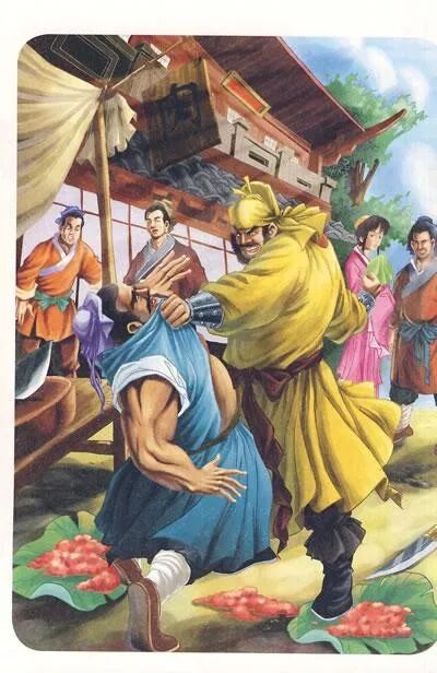 九纹龙史进因为得罪了官府,被人告发,出于无奈,只得投奔外乡。后来碰到了一个下级军官鲁达,二人在酒楼谈天,得知酒楼卖唱父女受当地恶霸郑屠的欺凌,鲁达仗义赠银,发送父女回乡,并主动找上门去,三拳打死了郑屠。事后弃职逃亡,转去五台山出家,法名智深。
