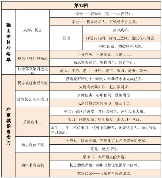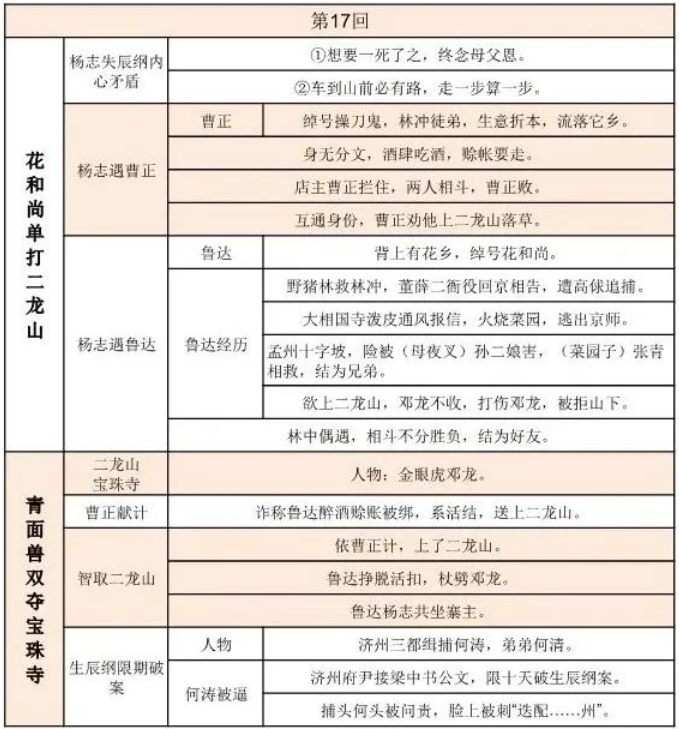 1.因失陷生辰纲而走投无路的杨志,与三拳打死镇关西、火烧菜园子庙宇的鲁智深合作,在操刀鬼曹正的帮助下,攻占二龙山。后来的武松、施恩、孙二娘、张青都在此入伙。