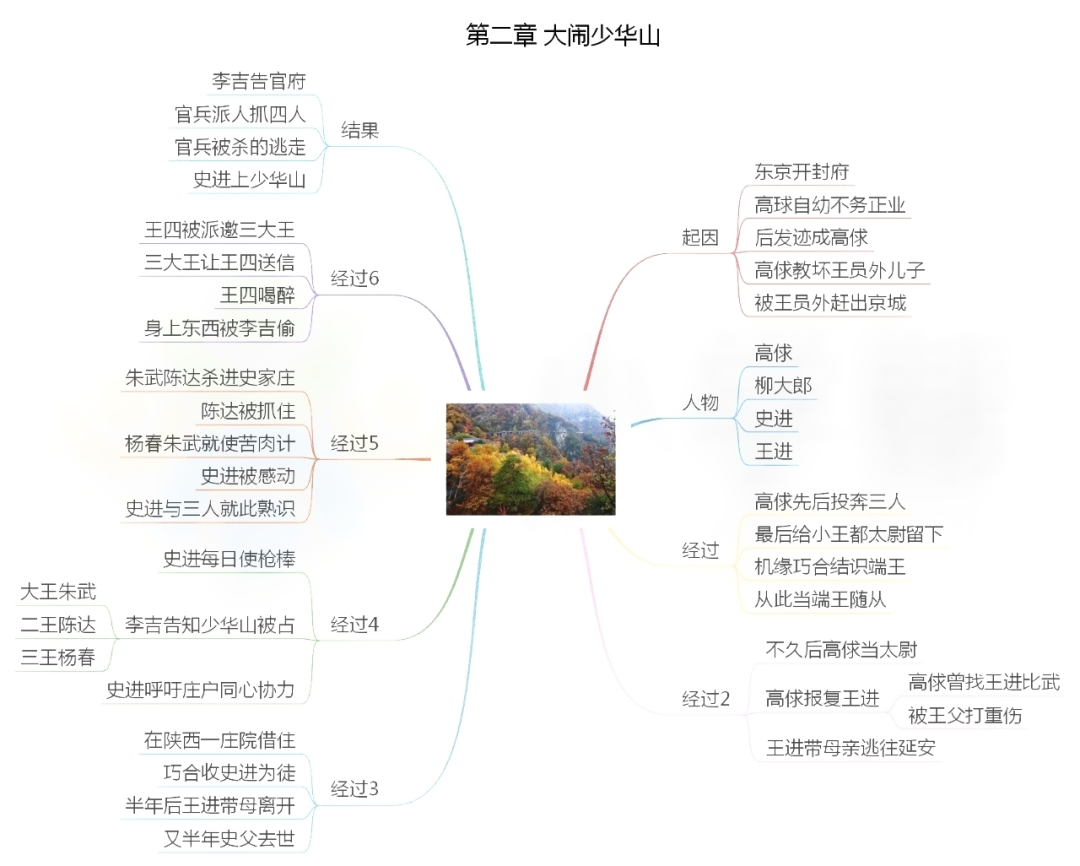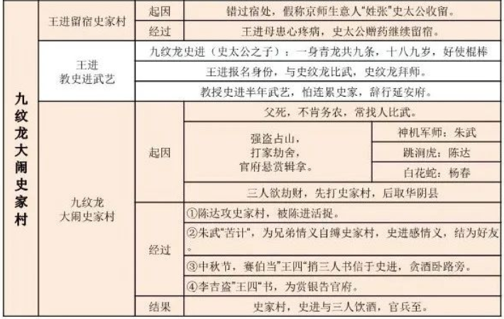 高俅与端王(后来的徽宗)结识。被提拔为殿帅府太尉,对曾打翻他的王升的儿子八十万禁军教头王进施行报复。王进出走延安府,在史家村给史进教枪棒。史进因擒少华山陈达而和朱武、杨春相识往来。华阴县中秋夜来史家村捉拿赏月喝酒吃肉的史进并少华山三好汉。