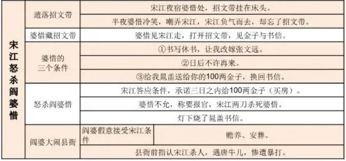 宋江慷慨救济阎婆母女,阎婆为答谢宋江,把女儿婆惜送与宋江作妻。婆惜与张三(张文远)私通,阎婆硬逼宋江与婆惜和好,但宋江生气而走。宋江欲给王公棺材钱,发现招文袋忘在家中,招文袋里有晃盖书信和谢金。回到家里,婆惜不给招文袋,以官司相逼要挟,宋江一怒之下杀了她。阎婆骗宋江至衙门告状,众公人不捉拿宋江。唐牛儿打了阎婆。