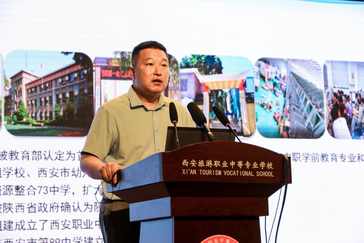 西安综合职业中等专业学校校长陈晶以“坚持职教先行,培育技能人才——西安综合职业中等专业学校《学前儿童卫生保健》课程建设体系”为题,基于学校特色文化,聚焦课程育人,向大家汇报学校课程体系建设的成果。