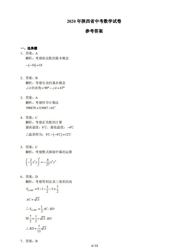2020年陕西中考真题&答案第一时间发布