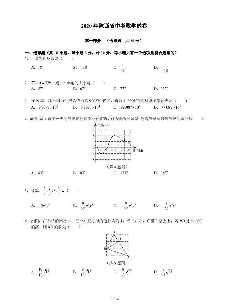 今天是陕西中考的第二天,目前根据考生和家长们的反馈,各科目难度反映不一,但是统一的认知是比去年难!部分试题,虽然整体不难,但是有一些压轴题、大题也很容易拉开差距。目前,大鹿从网络上收集到中考数学试题及答案(缺18-23题),供考生和家长们参考!中考全科完整版试题和答案,将于7月19日中考结束后第一时间发布!敬请关注!相关链接:2020陕西中考作文题目出炉:合唱!【2020陕西中考语文】文言文、阅读理解、古诗文等部分试题内容汇总!2020年陕西中考数学试题&答案