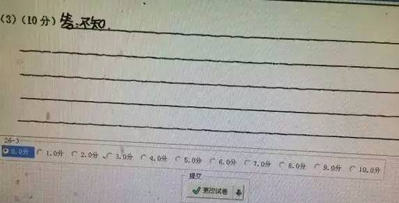 因此,改卷老师提醒,中考时千万不要投机取巧,就算水平再差,随便写一点也可以拿点分,作文只要不离题,拿个40多分是很容易的事,与0分差距还是相当大的。