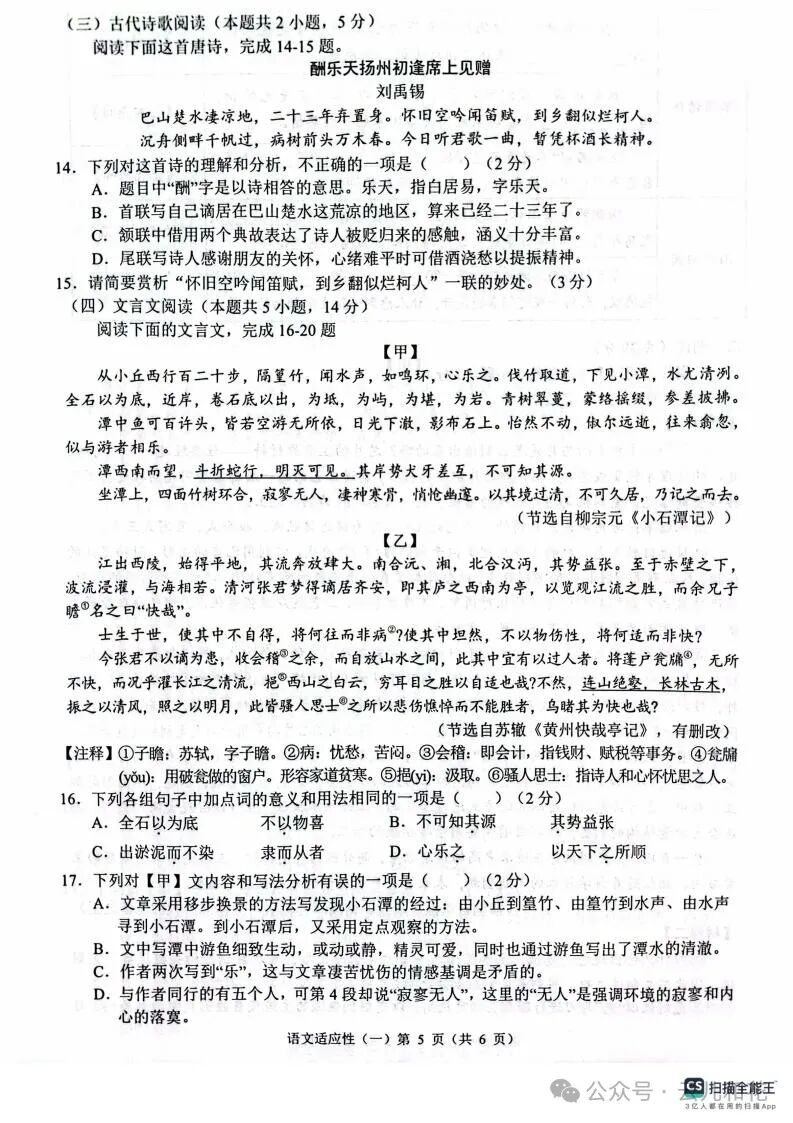 本公众号旨在分享试题资料,所有资源仅用于学习参考!如有侵权,请联系小编删除,谢谢!