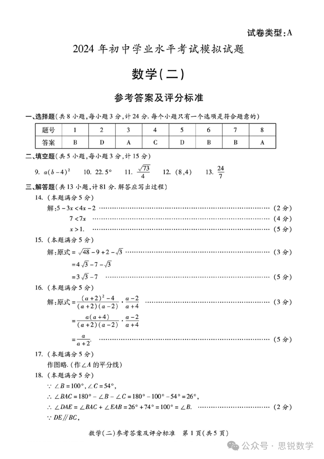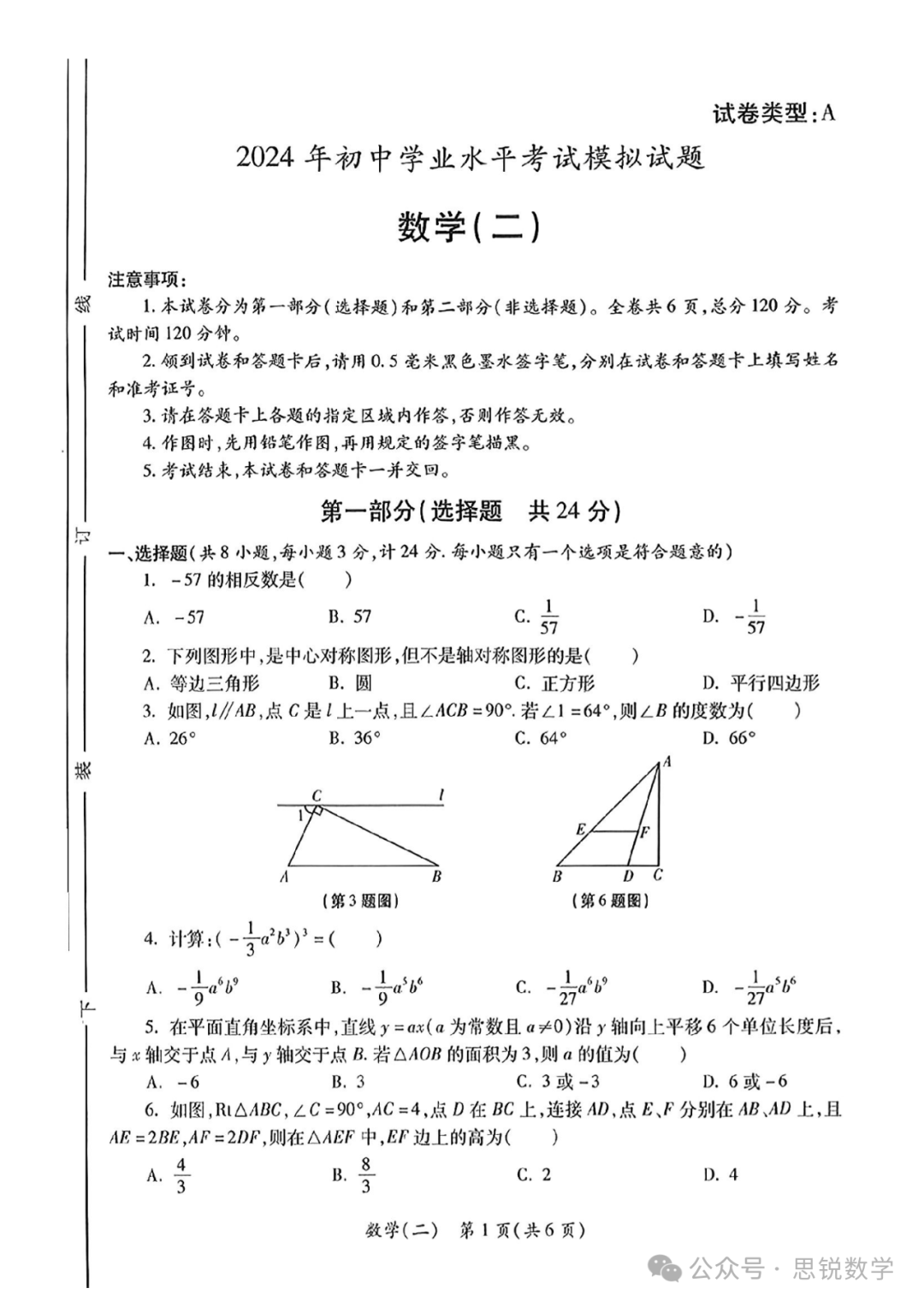 2024年陕西省初中学业水平考试仿真模拟示范卷8