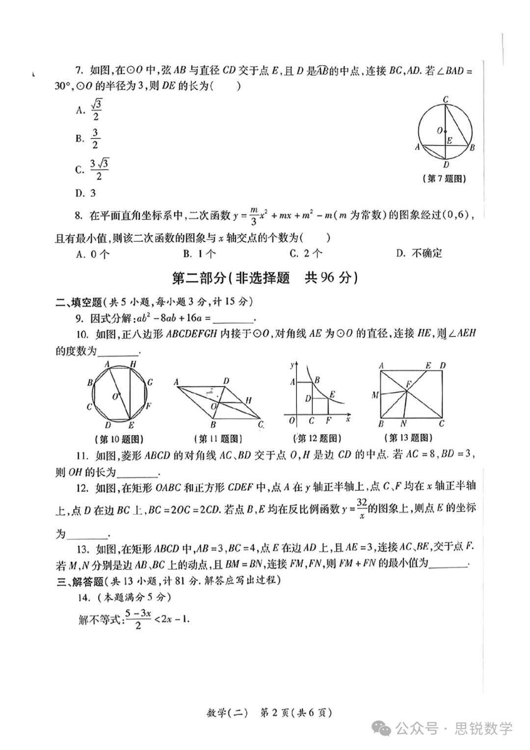 2024年陕西省西安市滨河学校九年级中考一模数学试题