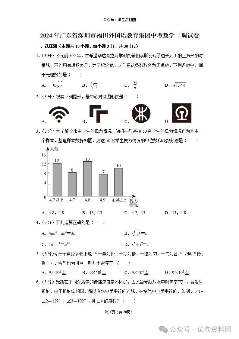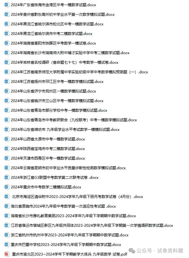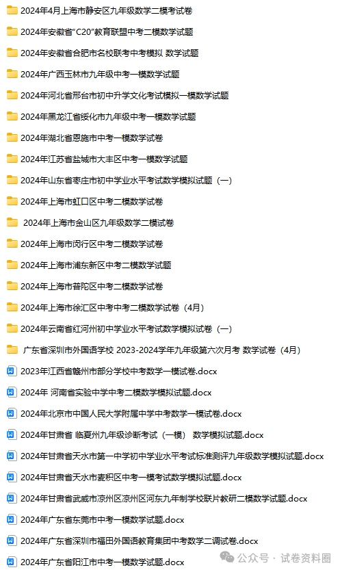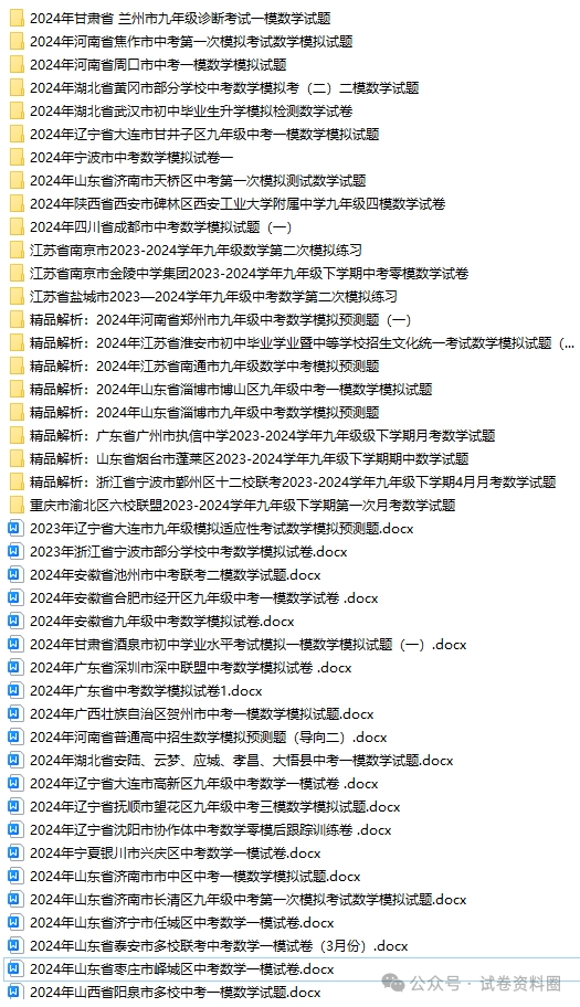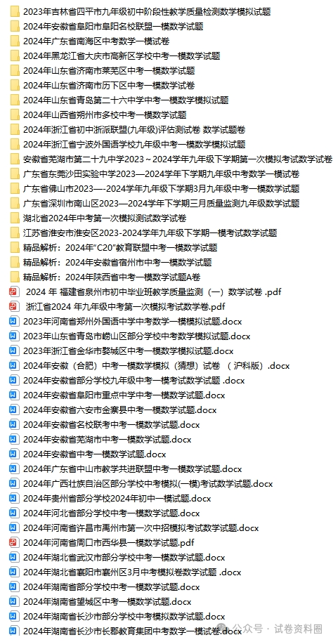 今日分享:2024年中考各地一模二模数学试题+答案下载(持续更新中)